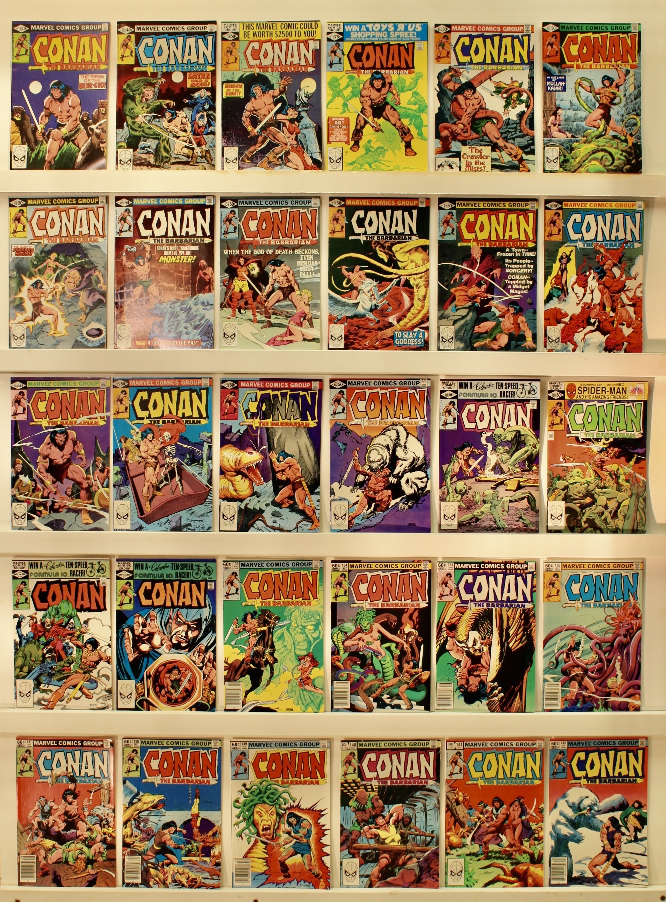Lot of 41 comics Issue #’s: 112-131, 133-141, 145-148, Annuals 1-5, Conan the Barbarian Movie Special #’s 1 & 2, Conan the Barbarian Red Nails #1 FINE or better. See photos