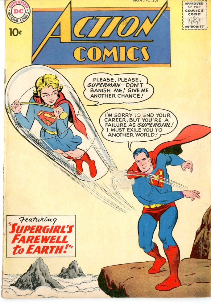 November 1959 Superman stars in "The Menace of Cosmic Man!" Congorilla stars in "Congorilla Goes to War!" Supergirl stars in "Supergirl's Farewell to Earth!" Curt Swan cover pencils. See photos