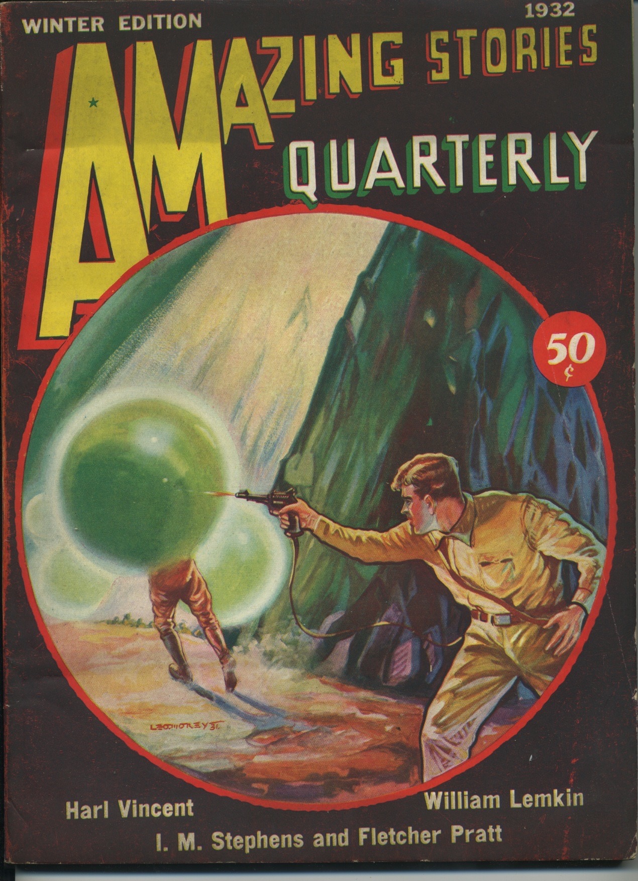 January 1932 Winter Edition PULP Leo Morey cover & art Harl Vincent, William Lemkin, I.M. Stepherns, Flethcer Pratt & others stories Wesso art