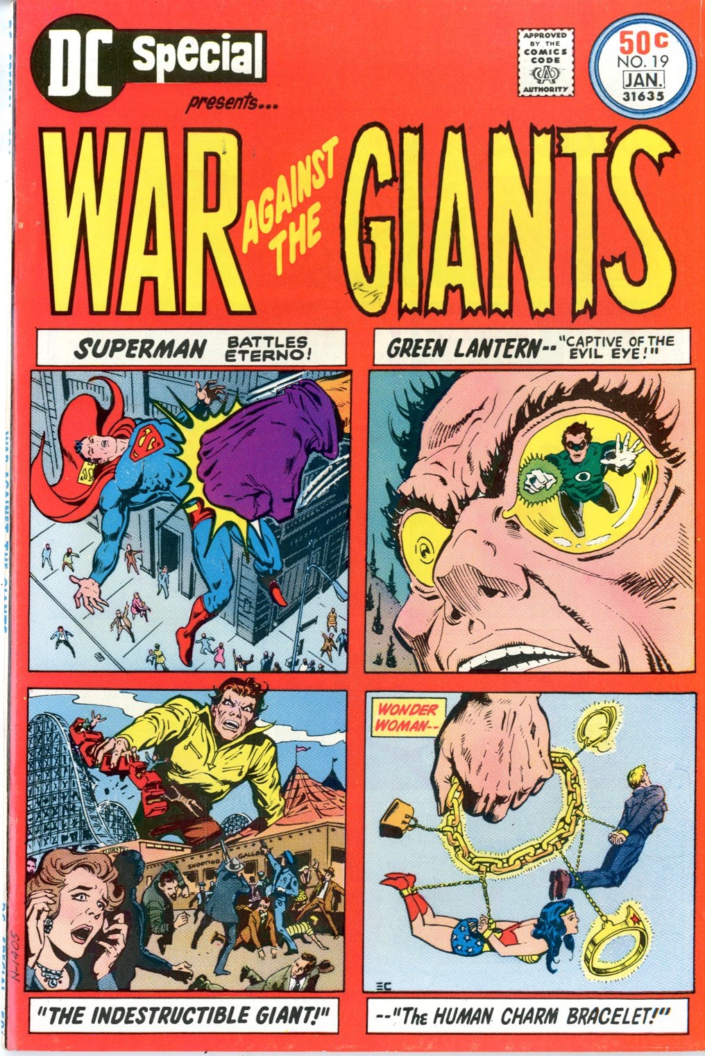 December 1975 War Against the Giants Ernie Chan cover Jim Shooter , John Broome, Morris Waldinger, Jack Miller, Robert Kanigher story Wayne Boring, Gil Kane, Sy Barry, Ross Andru, Mike Esposito art See photos