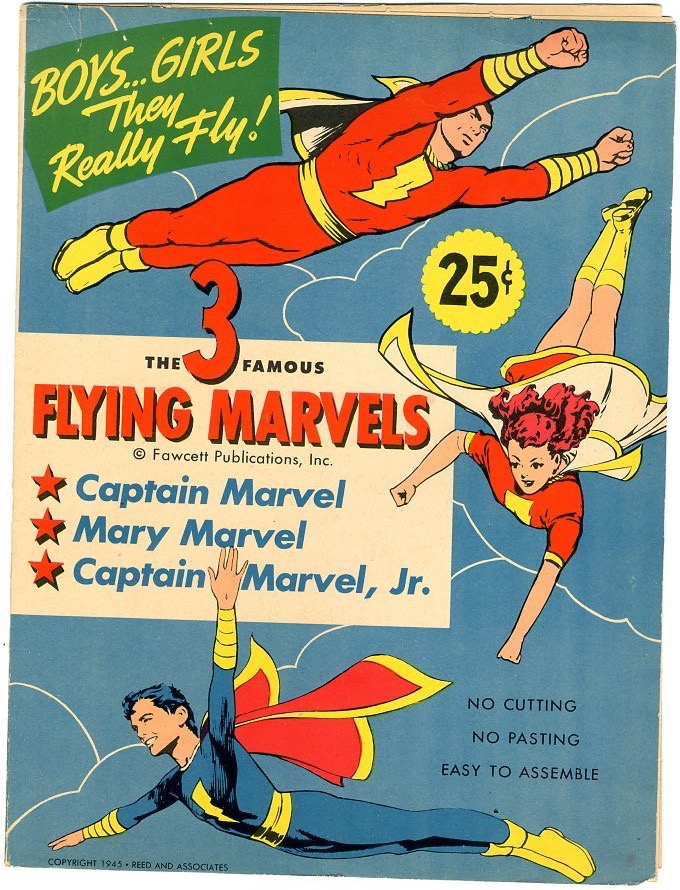 Punch outs, 1943, store item and club premium. Cpt. Marvel, Mary Marvel, Cpt. Marvel Jr. Fly away with them but don’t tell your parents.