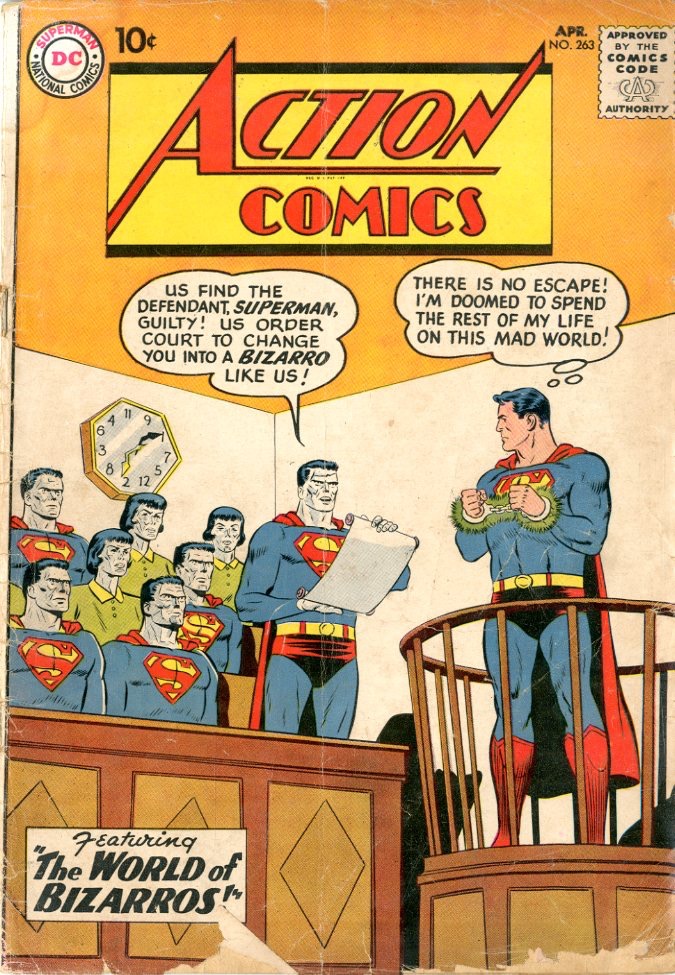 April 1960 Origin Bizarro World. Curt Swan, Stan Kaye cover Wayne Boring, Kaye, Jim Mooney art Otto Binder, Henry Boltinoff story See photos