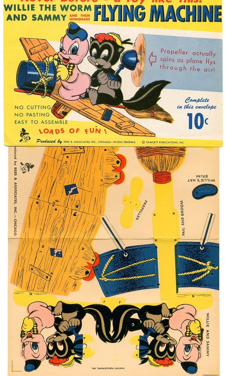 Willie The Worm and Sammy Flying Machine Paper Toy