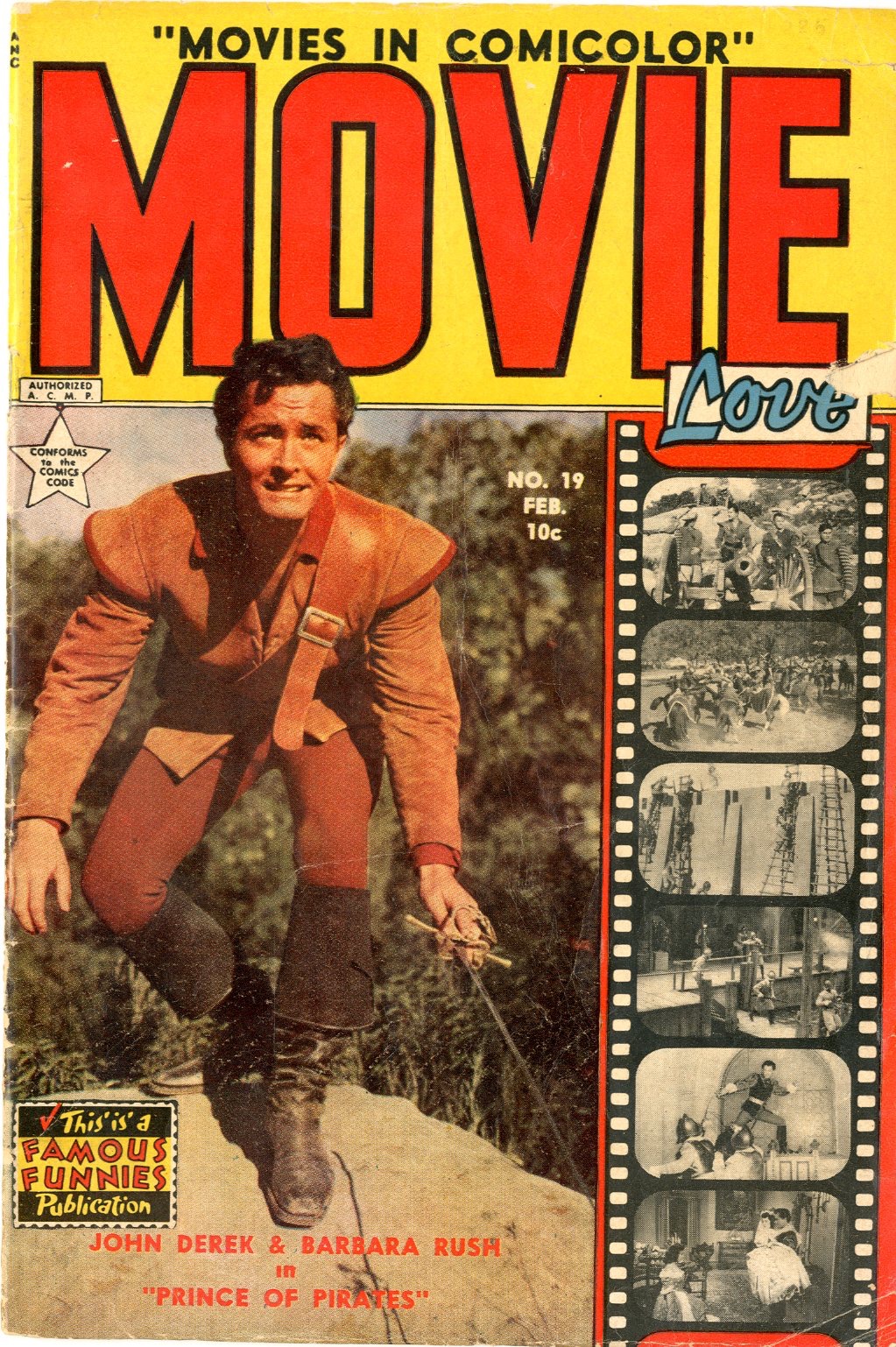 February 1953 Photo cover of & John Derek & Barbara Rush in “Prince of Pirates” Harold LeDoux art. See photos