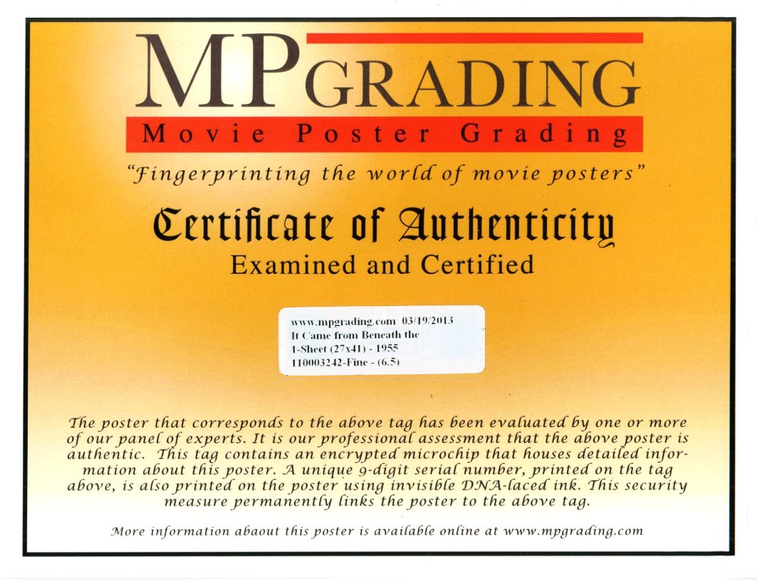 One sheet folded. Graded (6.5) by MP Grading. Some Fold line separation/ tiny holes top middle. Red staining left border. Paper loss bottom middle. Fantastic color on this poster. This is the best poster on this title. 27 x 41