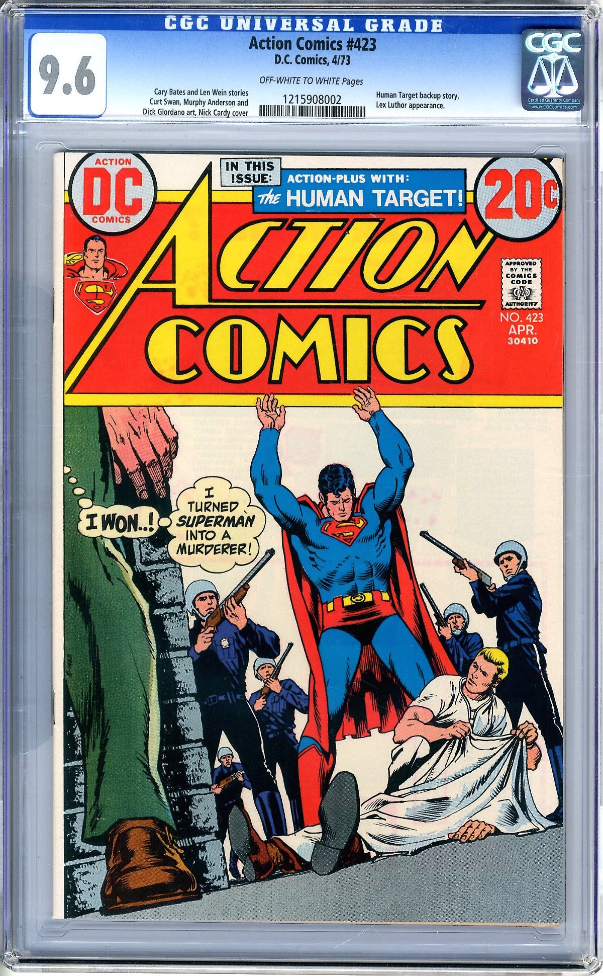 cgc 9.6 Off-white to white pages 4/73 Human Target backup story. Lex Luthor App. Cary Bates & Len Wein stories If it looks like there might be scratches on the case, there aren’t, it is from our scanner only. The case is perfectly fine.