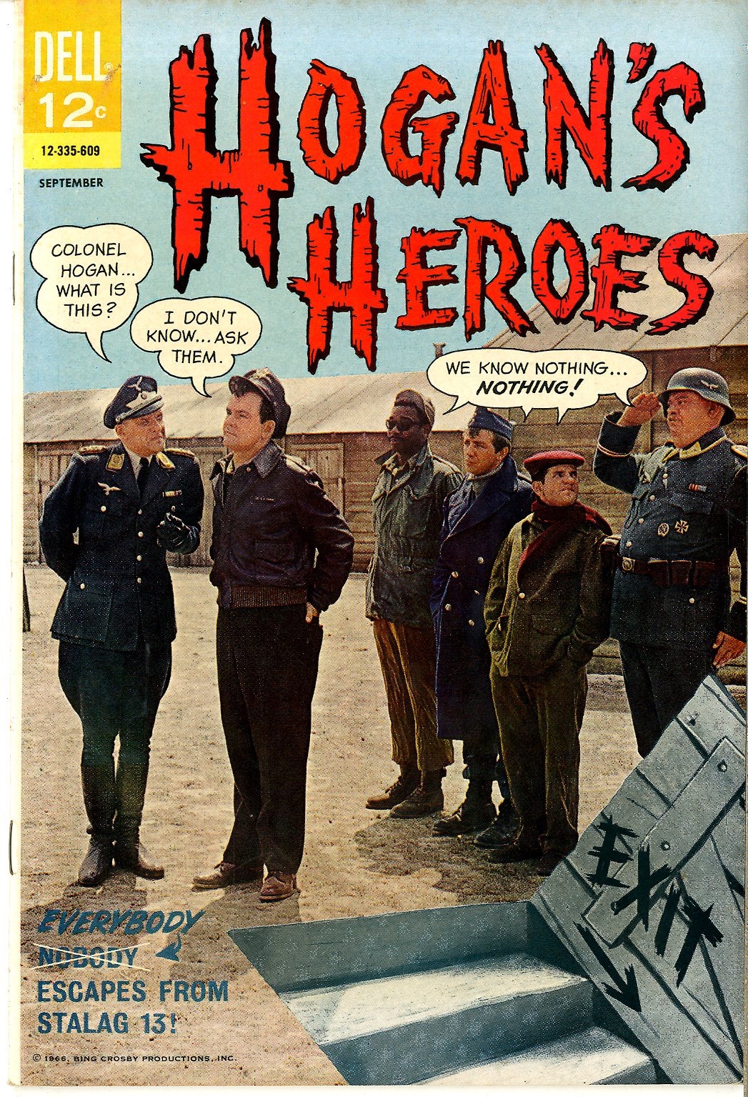 September 1966 Photo cover features John Banner, Bob Crane, Ivan Dixon, Richard Dawson, Robert Clary, Werner Klemperer Alan Riefe stories Steve Ditko, Sal Trapani art See photos