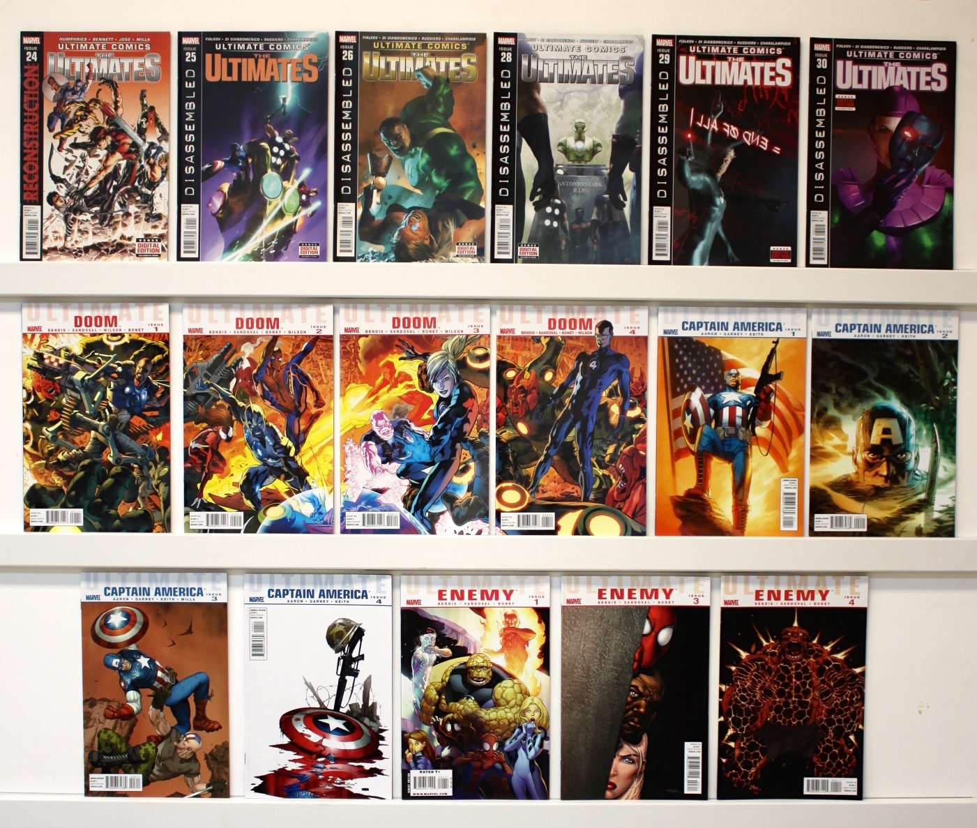 Lot of 41 comics. All are NEAR MINT- with the exception of several books. Issue #’s: 1-18, 18.1, 19-26, 28-30 Doom # s: 1-4 Captain America #1-4, Enemy 1,3 &4. See photos