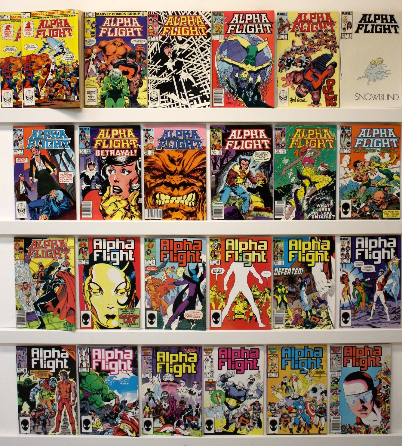 Lot of 28 books. Most are VFNM, may have a few of lower grade. Issue #’s: 2 of #1, 2-8, 10, 13-16, 20, 21, 25-29, 33, 36, 39, 40, 44, 47, X-Men and Alpha Flight # 1