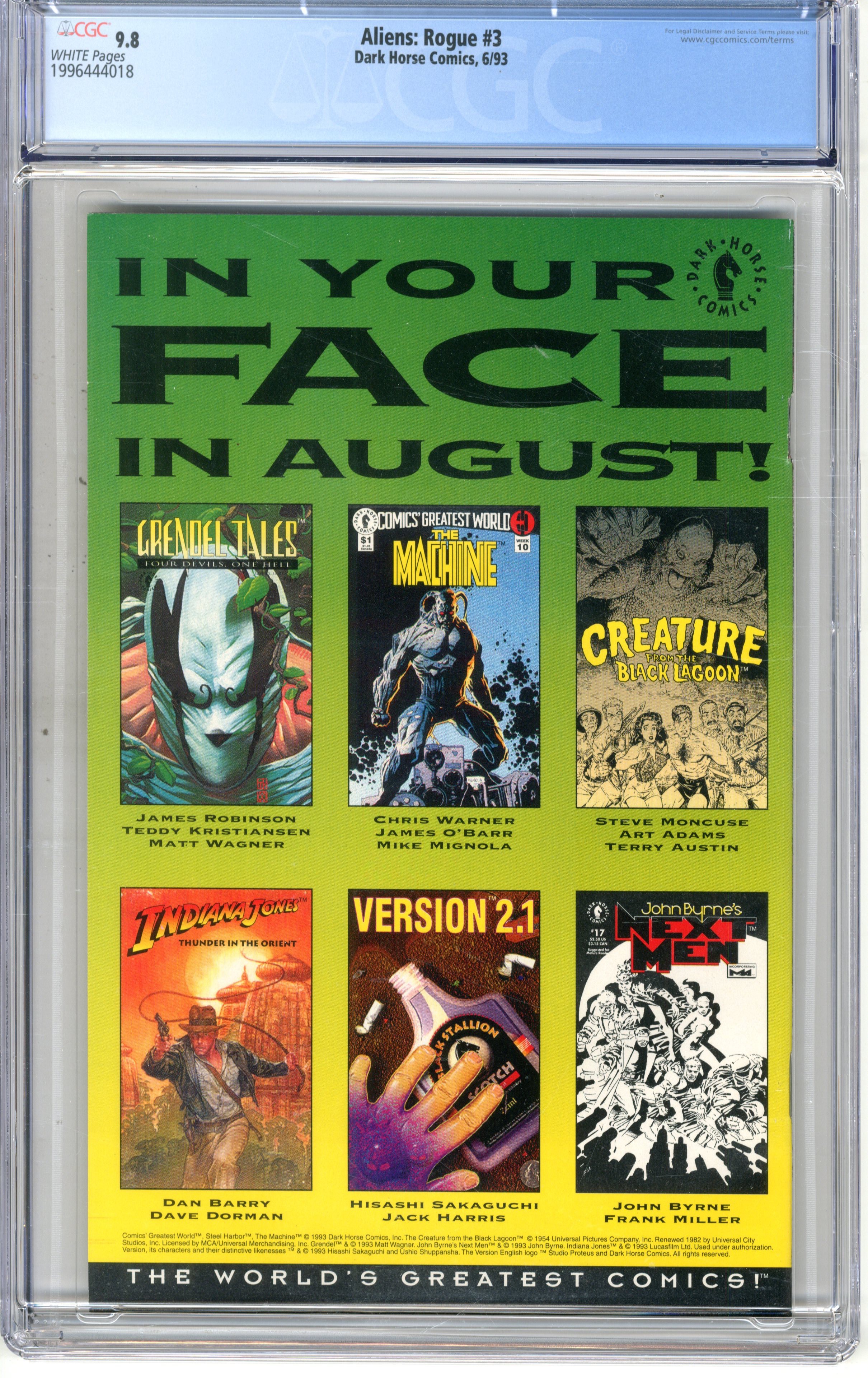 cgc 9.8 White pages 6/93 Ian Edginton story, Will Simpson cover & art. See photos If it looks like there might be scratches on the case, there aren’t- it is just from our scanner. The case is perfectly fine.