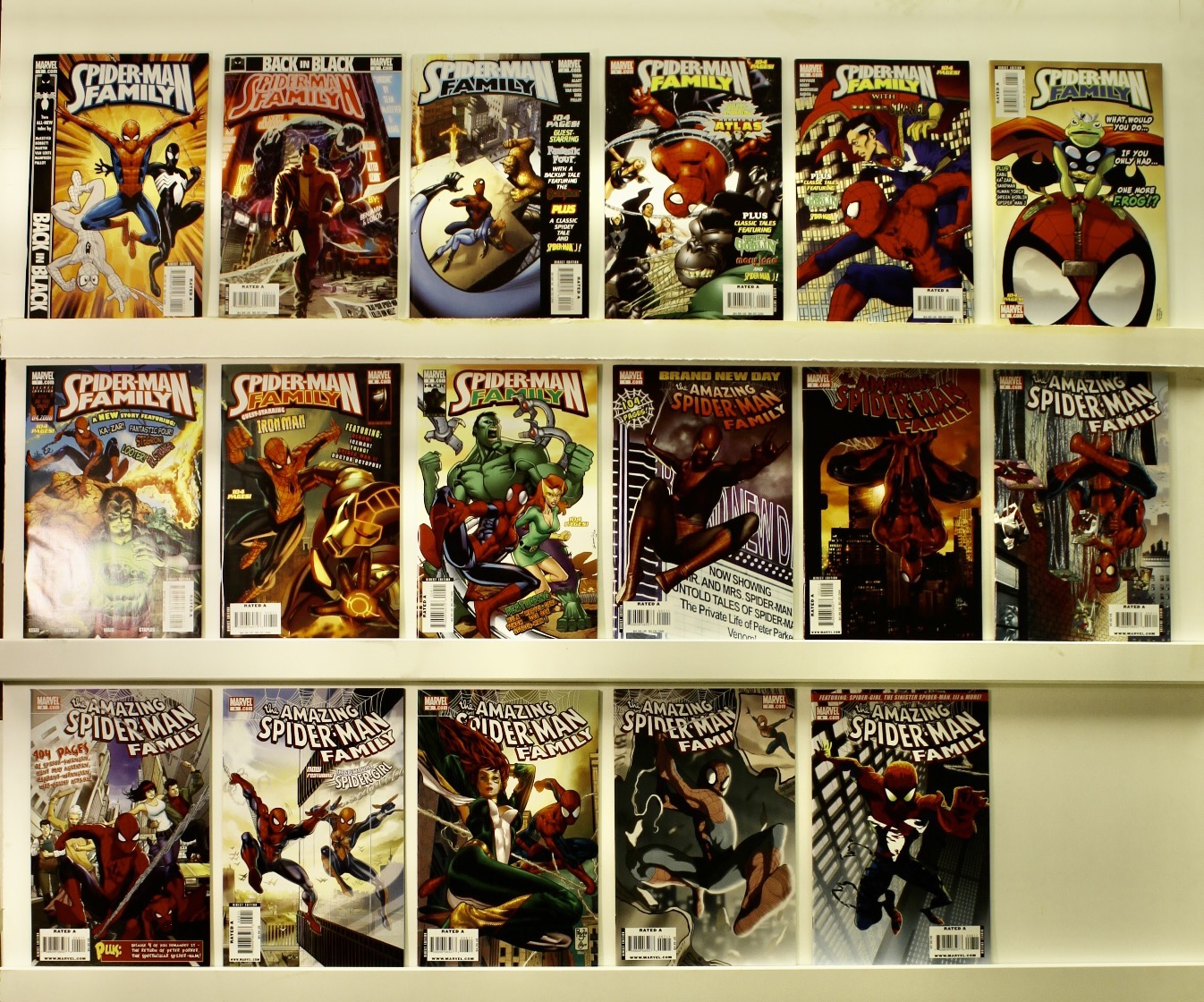 Lot of 17 comics. Average grade is NM- or better. Spider-Man Family - STRAIGHT RUN: Issue #’s: 1-9, Amazing Spider-Man Family - STRAIGHT RUN: Issue #’s: 1-8 See photos