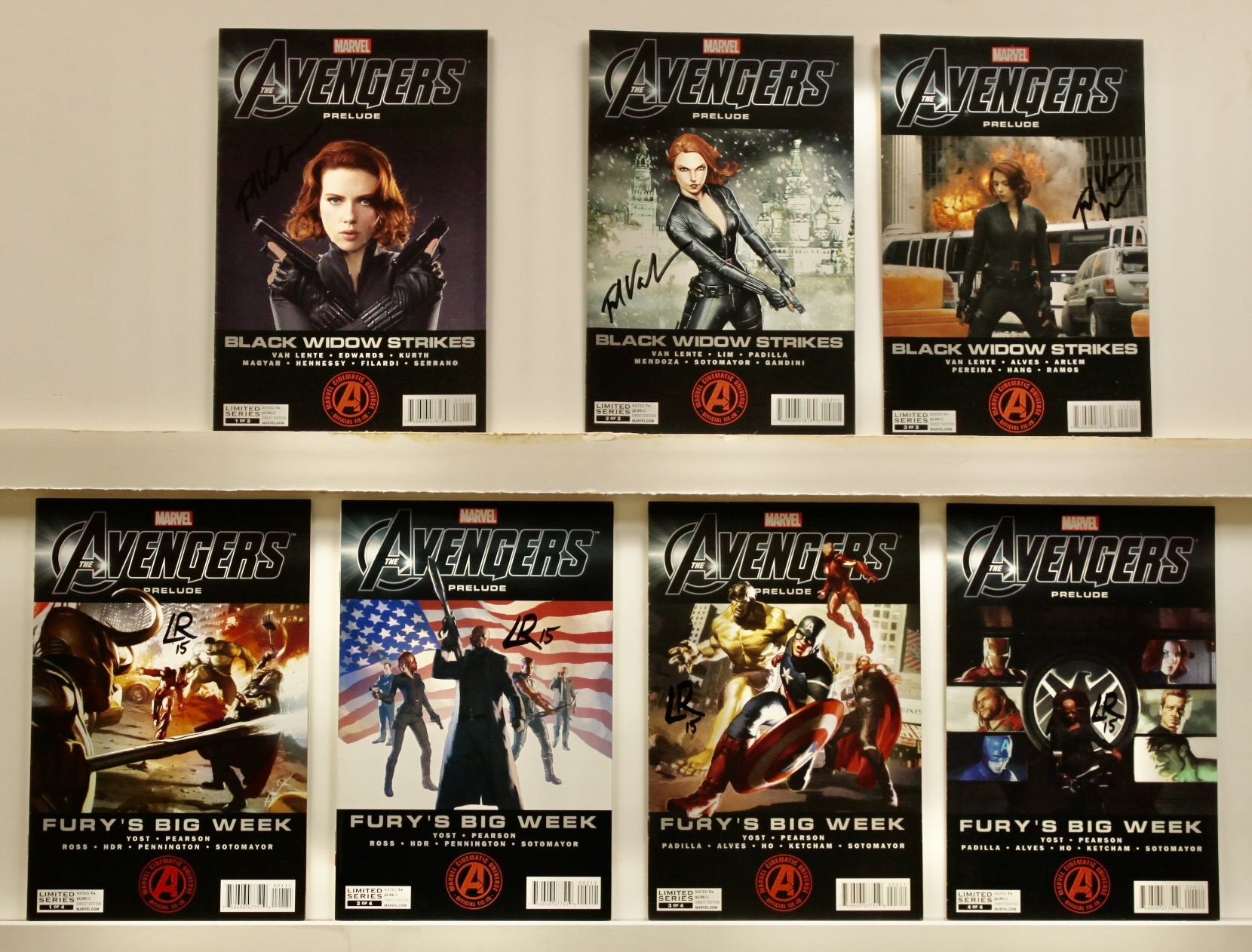 Lot of 7 books Black Widow Strikes 2012 #’s: 1-3 Fury’s Big Week: #’s 1-4 Each issue is signed by one creator See photo Average grade is FINE with some better, none worse. See photo