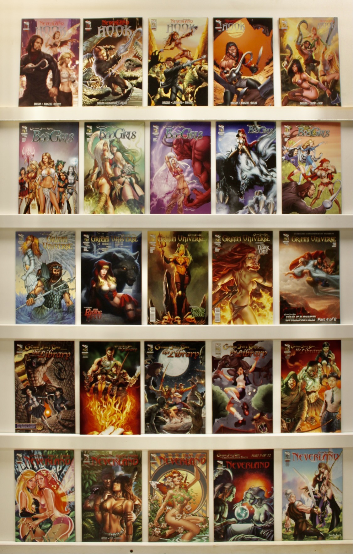 Lot of 25 comics. Various titles including: Neverland Hook, Bad Girls, Grimm Universe, The Library, & other titles Average grade is NEAR MINT- with maybe a few lower grade and a few higher. See photos
