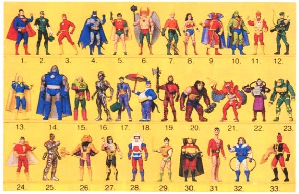 Group lot. missing Flash, Wonder Woman, Brainiac, and sword for #29. Includes Clark Kent.
