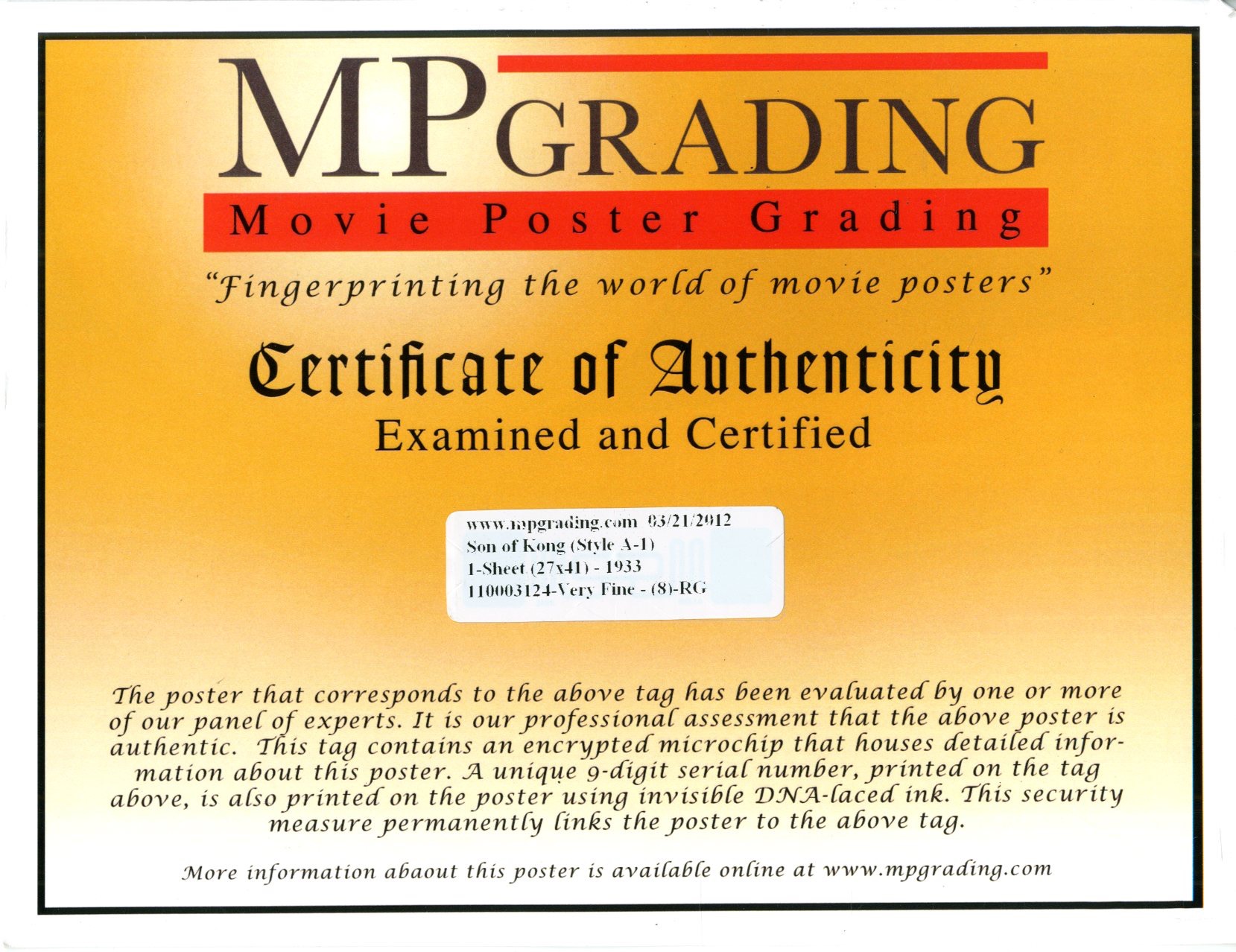 original One Sheet on linen, style A. Graded (8) by MP grading.