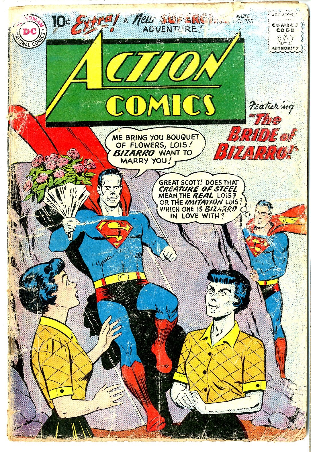 Curt Swan, Stan Kaye Cover & Al Palstino Art. 1st appearance of Bizarro Lois Lane (cover & story) in "The Bride of Bizarro!" Both Bizarros leave Earth to make Bizarro world. Congorilla stars in "The Abominable Snowman!" Supergirl stars in "Supergirl Visits the 21st Century!" 8/59 See photos