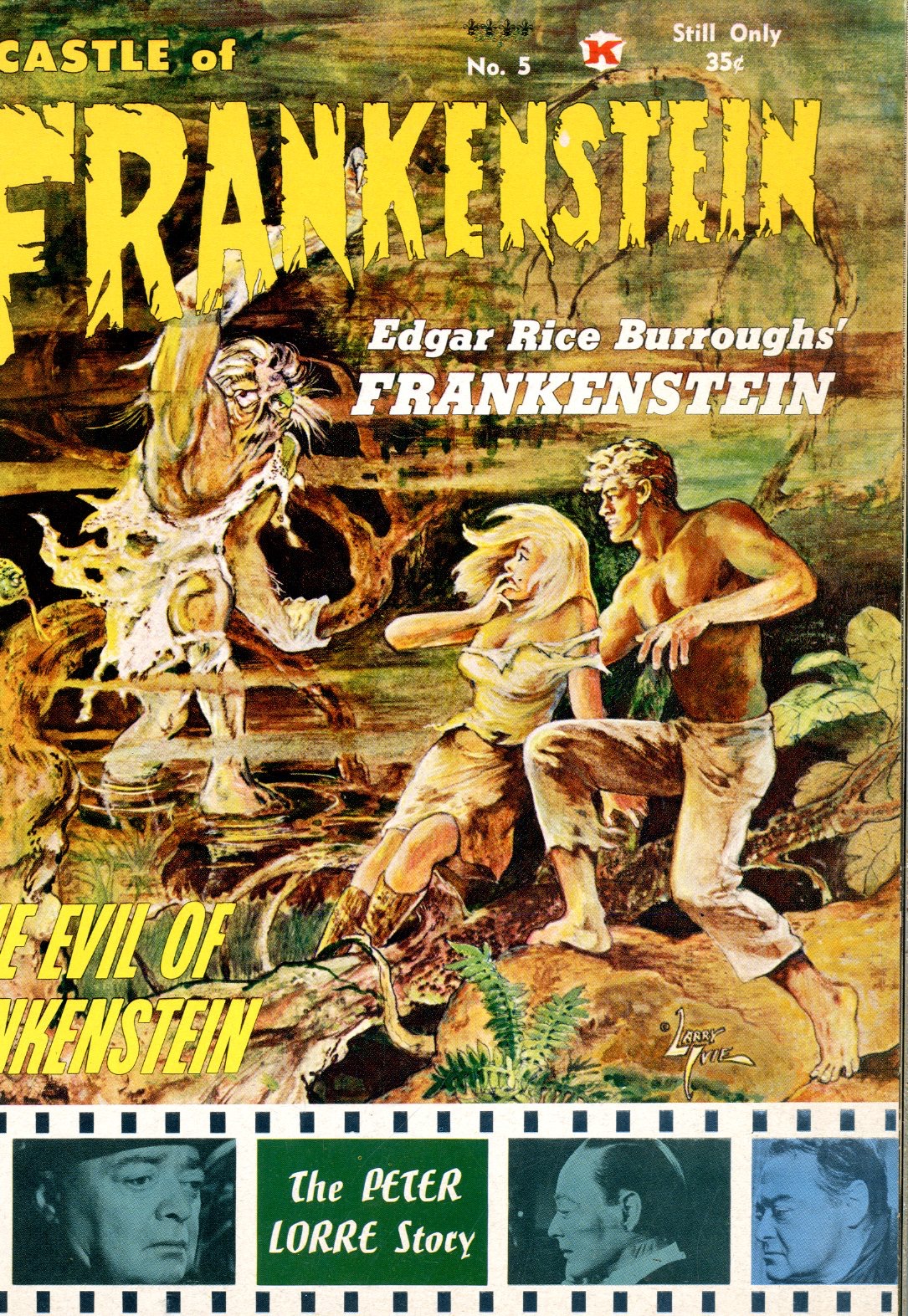 1964 This issue has articles on The Evil of Frankenstein, Out of this World (with Boris Karloff), Jean Cocteau, and Arthur Lubin. Also includes: "The Monsters of Edgar Rice Burroughs" and "The Peter Lorre Story." Cover art by Larry Ivie. See photos
