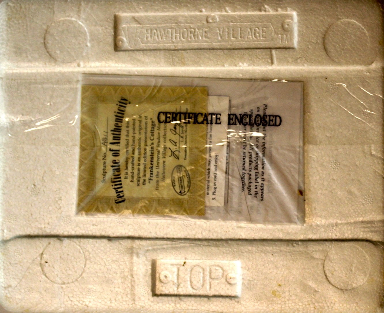 Frankenstein’s Cottage There is a certificate with this item.