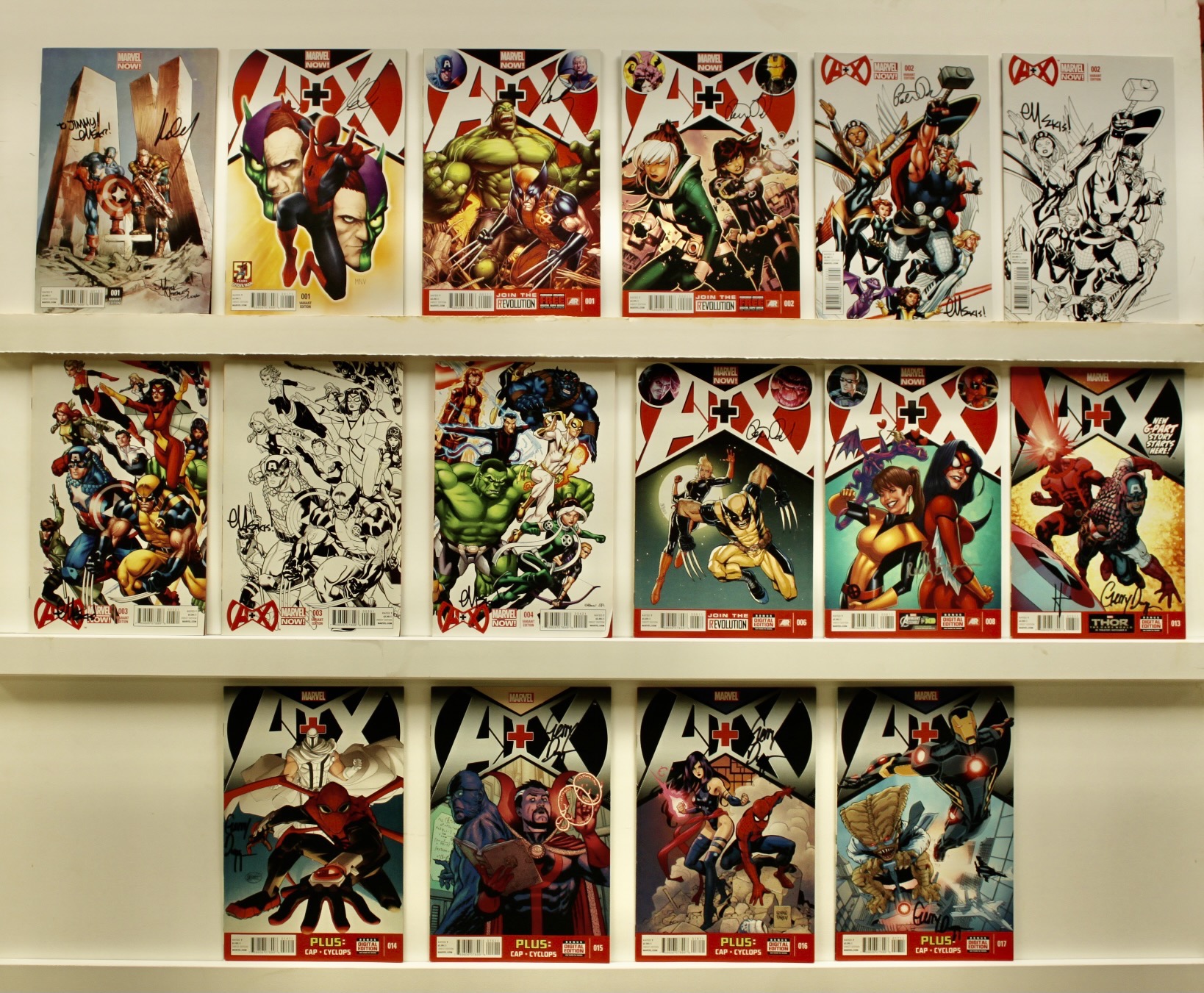Lot of 16 books Each book is SIGNED by one creator, and #1 is signed by 3 creators 2012 #’s: 3 of #1 variant editions with different covers, 2013 #’s: 3 of #2 variant editons with different covers, 2 of #3 variant editions with different covers, #4 variant edition, 6,8,13 2014 #’s: 14, 15, 16, 17 Average grade is VFNM with some of higher grade & a few of lower grade See photo